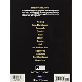 (Vocal Selections). This revised edition celebrates the legacy of one of the most famous musicals of all time with 13 newly engraved songs, a show biography and plot notes, facsimiles of Bernstein's original manuscripts, and 16 pages of photos from various productions. Songs include: America * Cool * I Feel Pretty * Jet Song * Maria * One Hand, One Heart * Something's Coming * Somewhere * Tonight * and more.